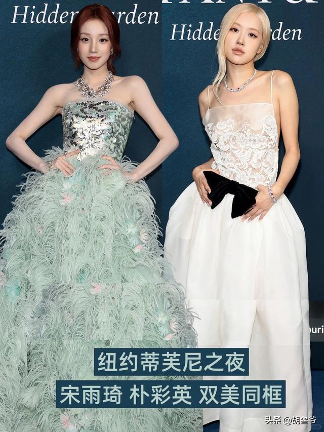而朴彩英耸肩驼背,妆容苍白,镂空礼服显得刻意,完全被宋雨琦的气场和气质压制。