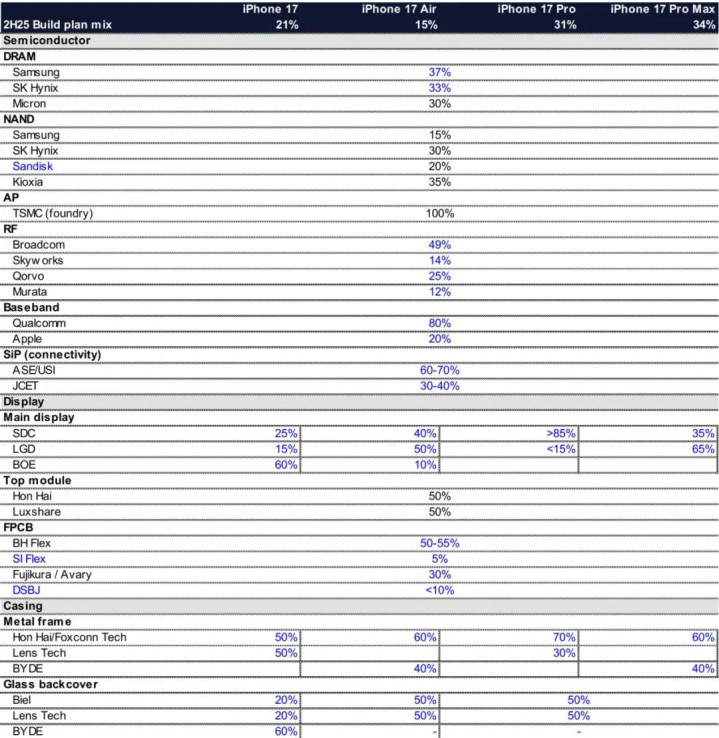 根据花旗银行的一份综合分析报告来看,iPhone 17 Pro系列依旧是三星和LG两家供应屏幕,iPhone 17和iPhone 17 Air才是三星、LG和京东方三家供应屏幕,其中京东方为iPhone 17提供了约60%的屏幕,为iPhone 17 Air提供了10%的屏幕。